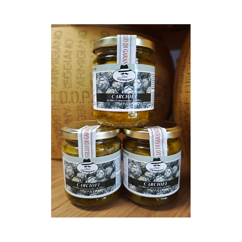 Karczochów w oliwie z oliwek extravergine (Taggiasca). Prawdziwie włoski smak. Znakomity dodatek do włoskich makaronów, pizzy. Świetnie komponuje się z szynką parmeńską z dodatkiem Parmigiano Reggiano DOP lub Pecorino Romano DOP zapiekane w toście lub naleśniku.