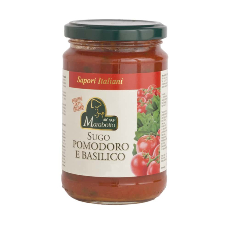 Skład: włoskie pomidory 85%, cebula, bazylia 5%, oliwa z z oliwek z pierwszego tłoczenia, sól, cukier.